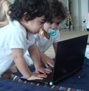 L and R watching an interview of Richard Freeman on my computer screen. They were engrossed.