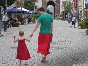 An openly gay friend of mine in Lebanon, oriental-dance performing artist and teacher posted this little story on Facebook about a man who wears dresses in solidarity with his little boy. It reminded me of a conversation I overheard between my children and a couple of close Swedish friend. “Boys can wear dresses too,” my friend’s husband explained to them.