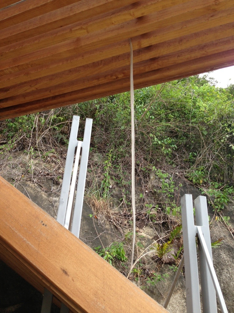 This morning Maher noticed something dangling off a roof right next to our bedroom.